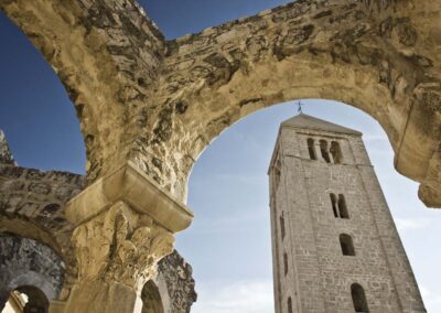Otok Rab i njegovo istoimeno gradsko središte, odnosno stara gradska jezgra, jedna su od najbolje očuvanih i najljepših srednjovijekovnih urbanih jezgri na Jadranu. Svoj vrhunac Rab postiže za vrijeme vladavine Mlečana kada se rapska jezgra sa lukom ističe kao jedno od najbitnijih trgovačkih središta na Mediteranu i točka susreta istočne i zapadne trgovine. U to vrijeme na otoku se nalazi 10 000 stanovnika, od čega je čak polovica u starogradskoj jezgri. Rab je kroz svoju bogatu povijest bio i rimski municipij, biskupija i kršćansko središte ovog dijela Jadrana.